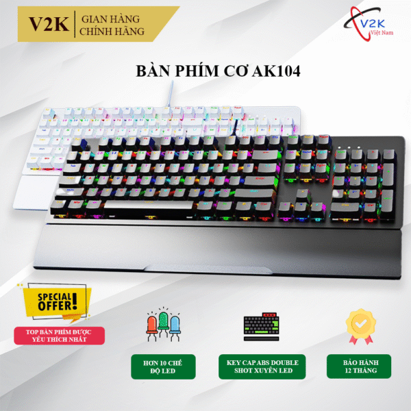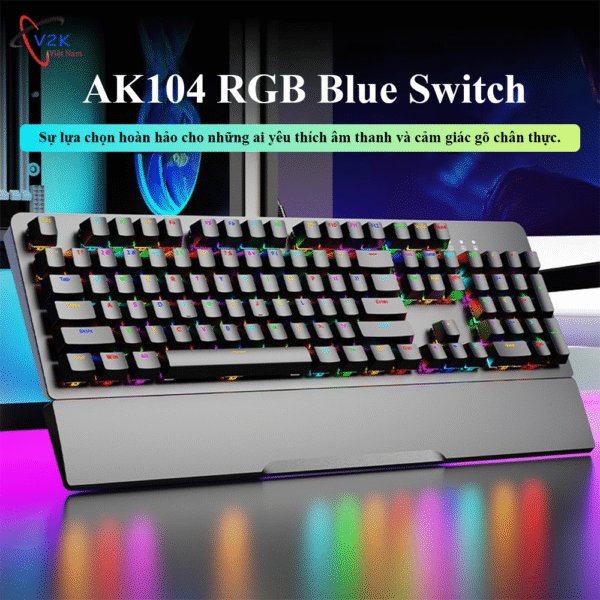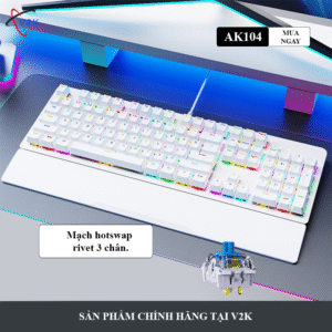 Tối ưu trải nghiệm gõ phím và chơi game với AK104 – bàn phím cơ gaming chất lượng cao. Với thiết kế hiện đại, khung kim loại cứng cáp và LED RGB rực rỡ, sản phẩm mang lại sự thoải mái và hiệu suất tối đa cho cả game thủ lẫn người dùng văn phòng.
