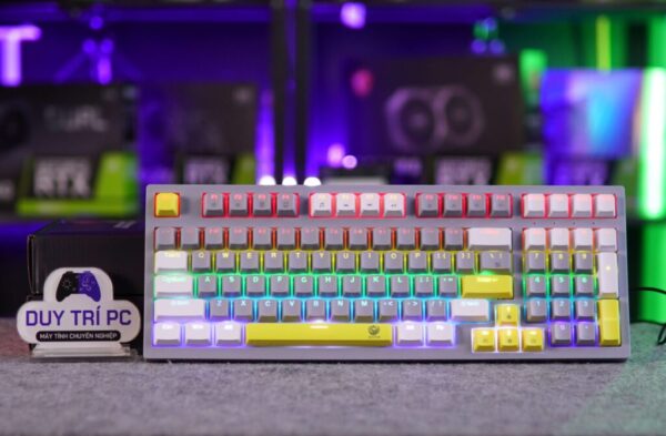 – Bàn phím có các tính năng như chống nước cơ bản, các phím nóng cho các chức năng đặc biệt như điều chỉnh âm lượng, media controls, và khóa phím Windows.