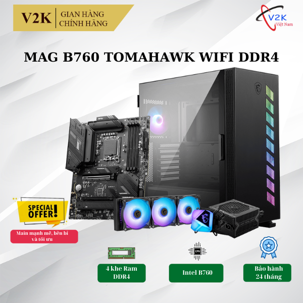 Mainboard MSI MAG B760 TOMAHAWK WIFI DDR4 – Hỗ trợ Intel Gen 12/13 – ATX – WiFi 6 – 2.5G LAN