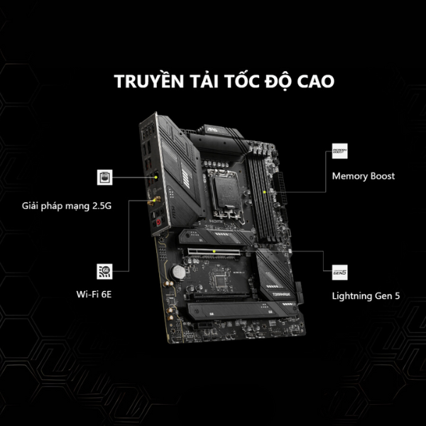 LAN 2.5G + Wi-Fi 6E tốc độ cao, ổn định cho game và làm việc