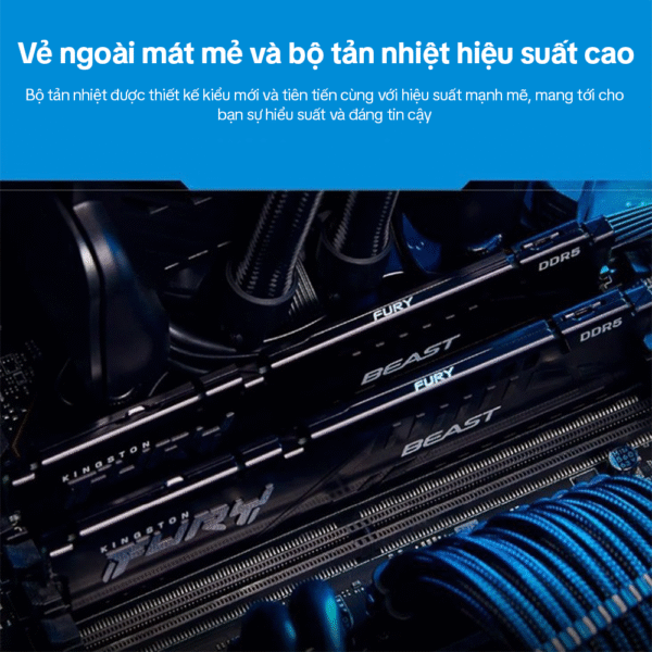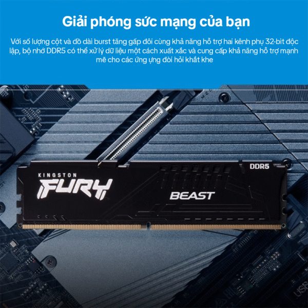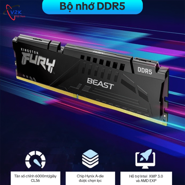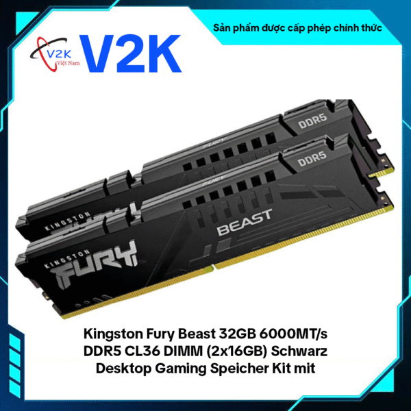 Bộ RAM Kingston FURY Beast RGB DDR5-6000 (2×16GB) CL36 trang bị công nghệ Infrared Sync cho hiệu ứng RGB chuẩn mượt, hỗ trợ Intel XMP 3.0 & AMD EXPO™, tích hợp ODECC và dual 32-bit subchannels, phù hợp build PC gaming, livestream, thiết kế. Tản nhiệt nhôm đen trắng, gọn chiều cao (~42 mm).